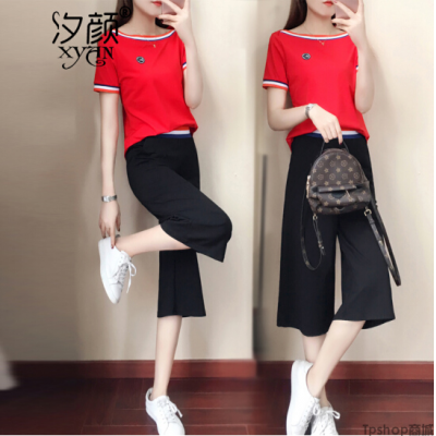 商品名称: 汐颜 阔腿裤套装女2018新款女装短袖套装韩版宽松时尚七分裤两件套G-322H-6666