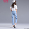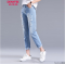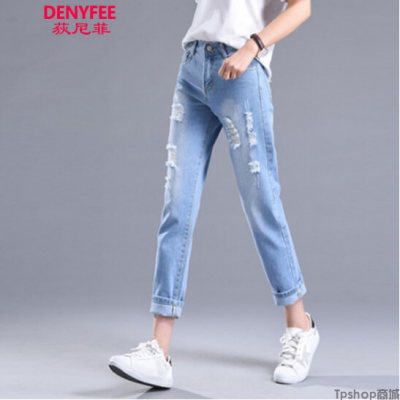 商品名称: 荻尼菲夏季牛仔裤女2018新款时尚高腰牛仔九分破洞哈伦女裤