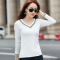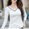 商品名称: 芈儿2018新款春季女装百搭修身显瘦纯棉v领长袖t恤女百搭打底衫ME831