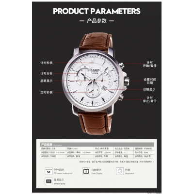 商品名称: Casio/卡西欧手表男三眼皮带防水石英表正品学生男表BEM-506L-7A 卡西欧商务休闲石英男表