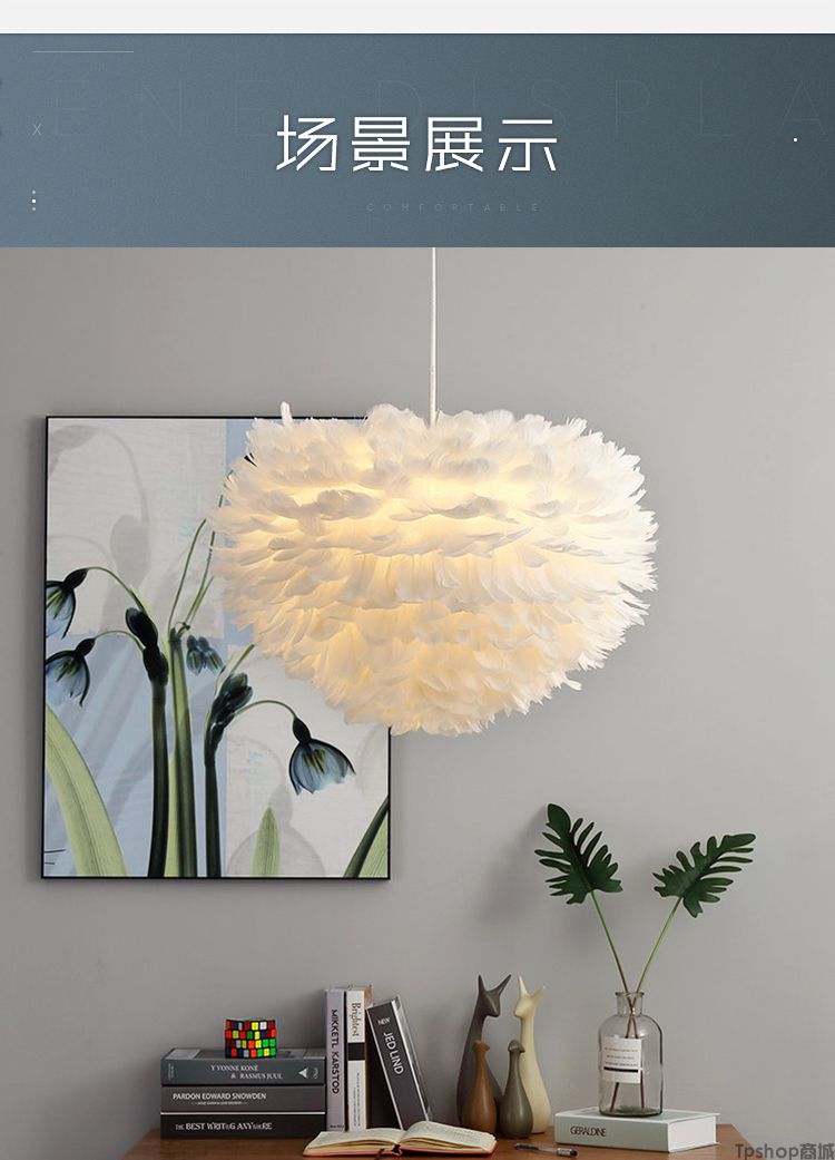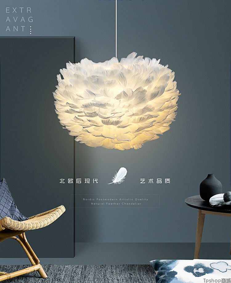 商品名称: 羽毛灯卧室北欧灯具现代简约创意客厅儿童房温馨浪漫公主羽毛吊灯