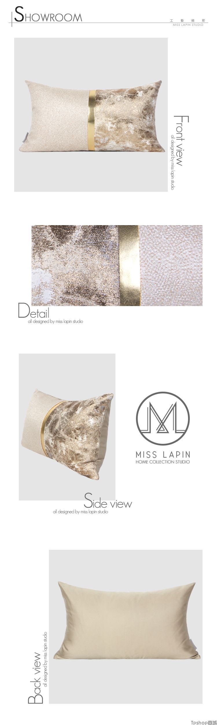 商品名称: 澜品家居简约现代北欧/样板房靠包抱枕靠垫/浅金色提花拼接腰枕