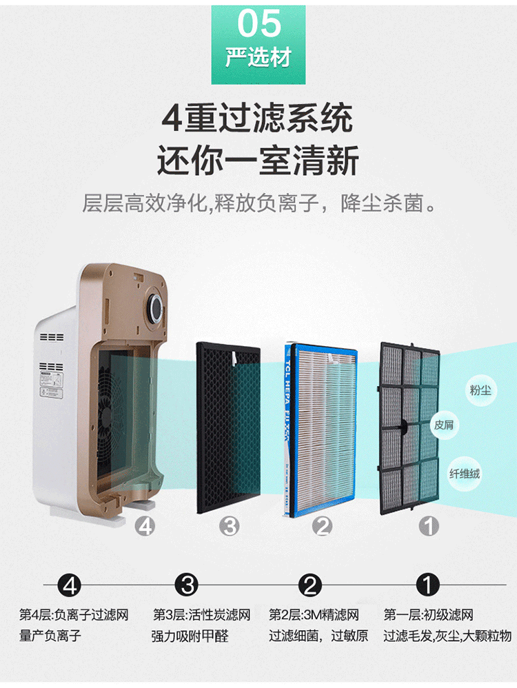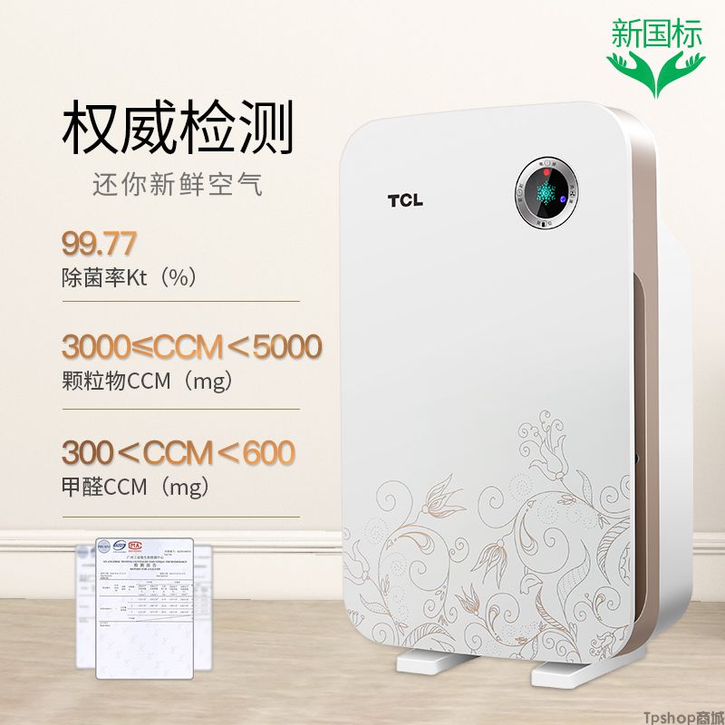 商品名称: TCL空气净化器家用除甲醛雾霾PM2.5卧室除二手烟粉尘除异味负离子